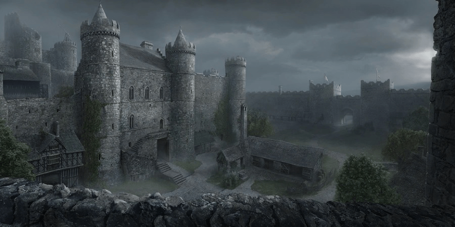 Raventree Hall is ancient, dating back to the days of the First Men. The walls are covered in moss, with a tower at each angle in the wall. Two huge, square towers flank the gate. Inside the walls are an outer ward, a large timber keep and a godswood. The godswood contains a single weirwood of massive size. Hundreds of ravens roost on the dead weirwood, which is said to have been poisoned by the Brackens, the Blackwoods’ ancestral foes.