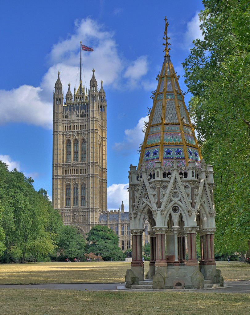 And there is an architectural monument outside the Houses of Parliament known as the Buxton Memorial Fountain that commemorates the emancipation of slaves in the British Empire in 1834, and in particular, the role of British parliamentarians in the abolition campaign. It was commissioned by Charles Buxton MP, and was dedicated to his father Thomas Fowell Buxton along with William Wilberforce, Thomas Clarkson, Thomas Babington Macaulay, Henry Brougham and Stephen Lushington, all of whom were involved in the abolition movement.