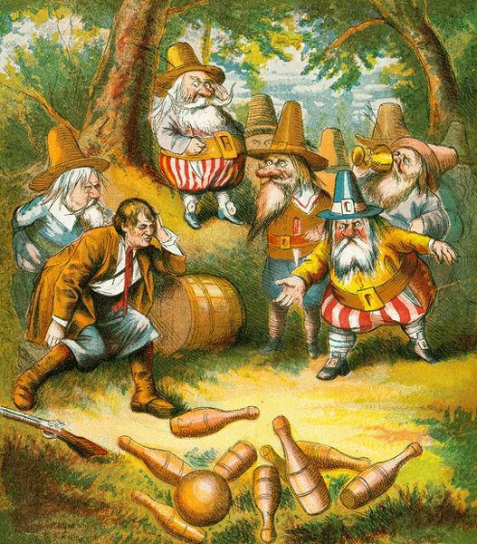 I understood leprechauns to be bigger than grandma’s garden gnome, a similar species it seemed to me, possibly also related to the little Dutch men just north in the Catskills who put Rip Van Winkle to sleep with a game of bowling. I was told that thunder came from little Dutch men still bowling in the mountains and that rainbows pointed to leprechauns.